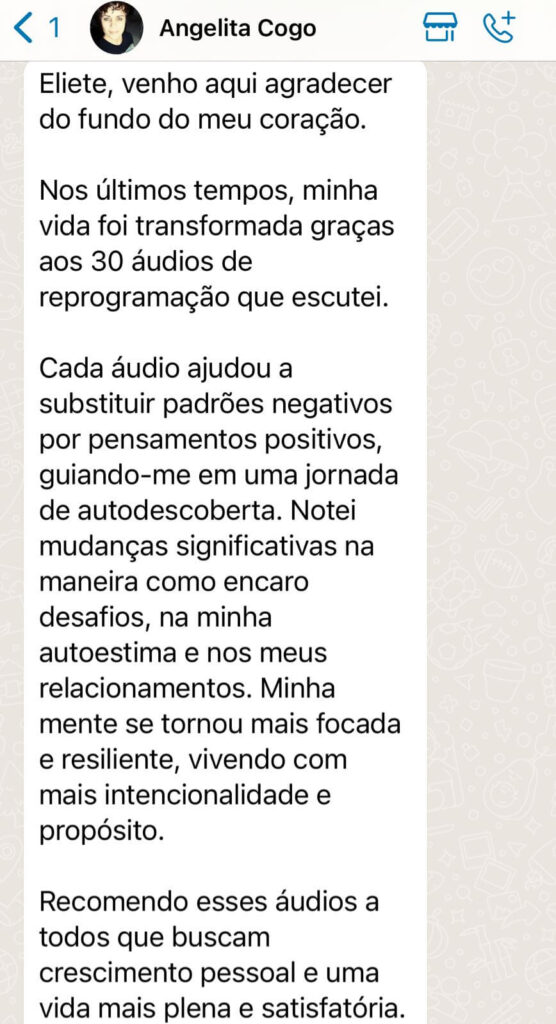 Criei os áudios para favorecer as pessoas que precisam e me pediam um passo a passo diário, para ajudá-las a Reprogramar suas Mentes.